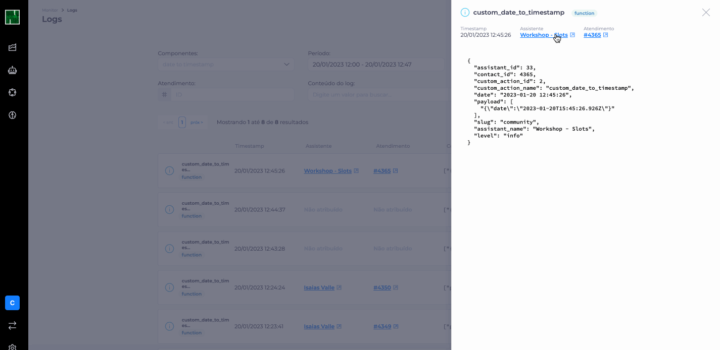 * **Assistente:** link para o assistente que ocorreu a execução da function.